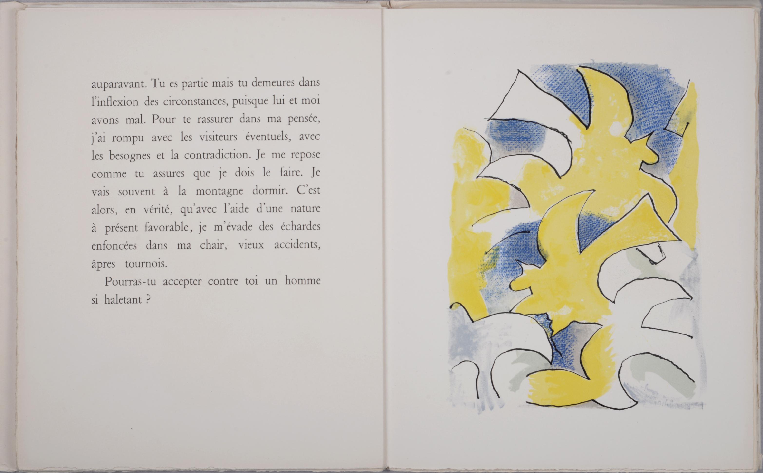 Des ouvrages réalisés en commun ont jalonné cette amitié, dont le dernier Lettera Amorosa en est le point culminant. Il est souvent considéré comme celui qui regroupe les plus belles lithographies de l'artiste. Il traite de la séparation amoureuse et les estampes de Braque utilisent "toutes les couleurs de la palette à l'exception du rouge, jugé trop agressif pour traduire le sentiment de solitude et d'abandon qui émane de l'œuvre" (Eve Duperray, René Char dans le miroir des eaux, 2008, n° 50 et 57). Vallier, Braque, 187.