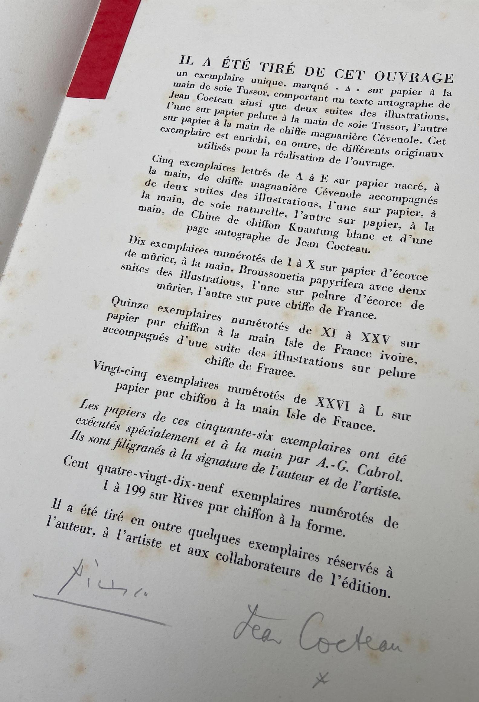 L'ouvrage contient des lithographies de Pablo Picasso reproduisant ses œuvres majeures entre 1916 et 1961, et réalisées par Jean Cocteau à l'occasion du 80e anniversaire de Picasso. L'exemplaire fait partie des ouvrages réservés à l'auteur et est signé au colophon au crayon gris par Jean Cocteau et Pablo Picasso.