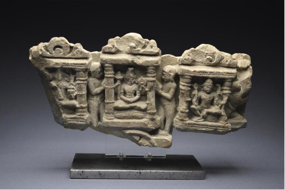 La niche centrale accueille une représentation de Shiva assis sur un haut coussin en position du lotus (vajraprayanka), les mains en position de méditation, deux attributs placés à ses côtés.