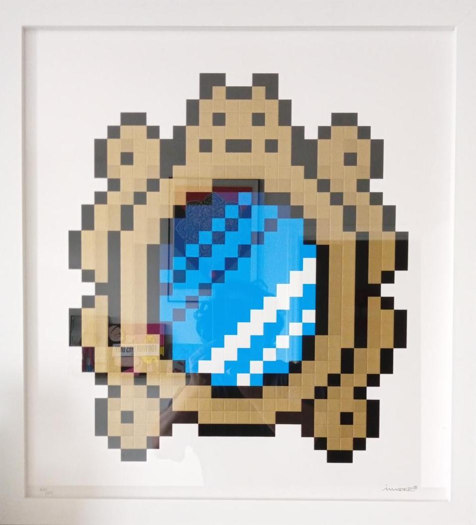 Notre sérigraphie fait partie de son projet Versailles qui a commencé en 2017 ! L'artiste a posé sur les murs plusieurs mosaïques en rapport avec le passé de ville lumière. Celle apposée rue du Général de Gaulle est un miroir, sans doute une référence à la Galerie des Glaces du Château de Versailles !