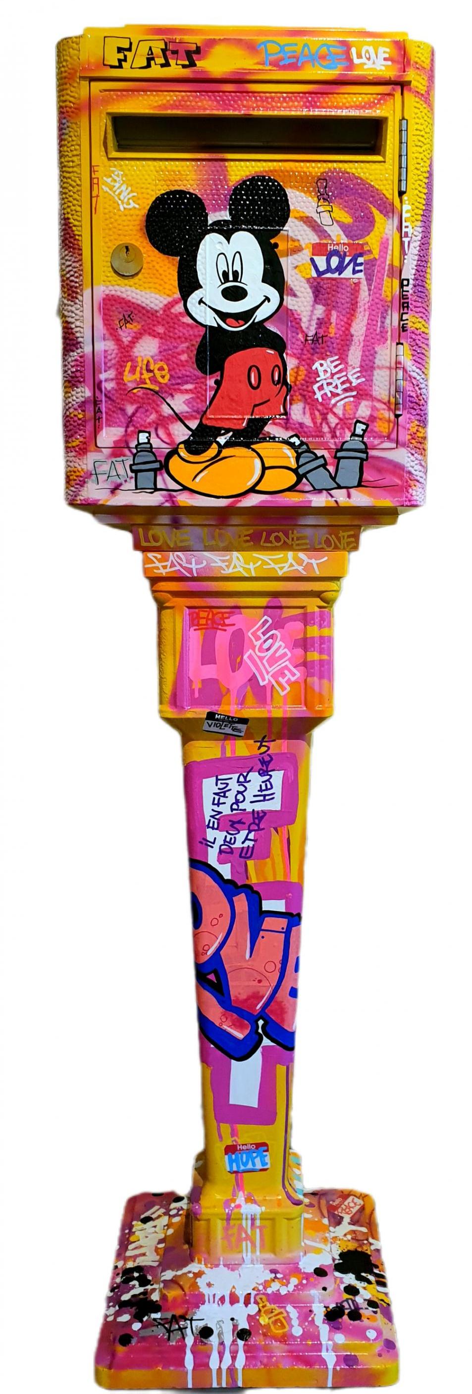 Acrylique, aérosol et Posca sur boîte aux lettres