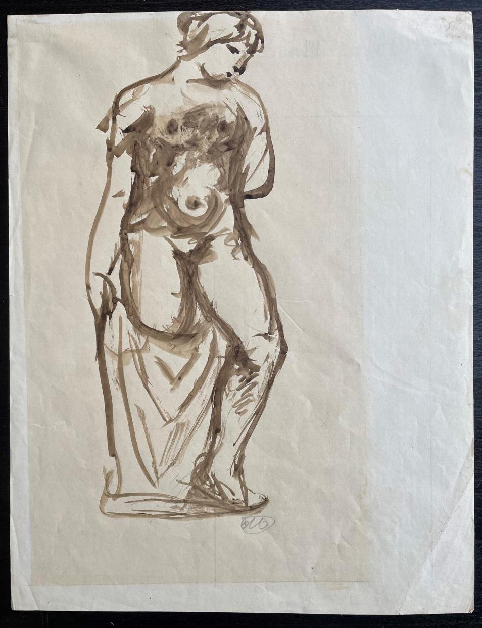Ce dessin d'Aristide Maillol à l'encre s'apparente à une étude de nu académique.