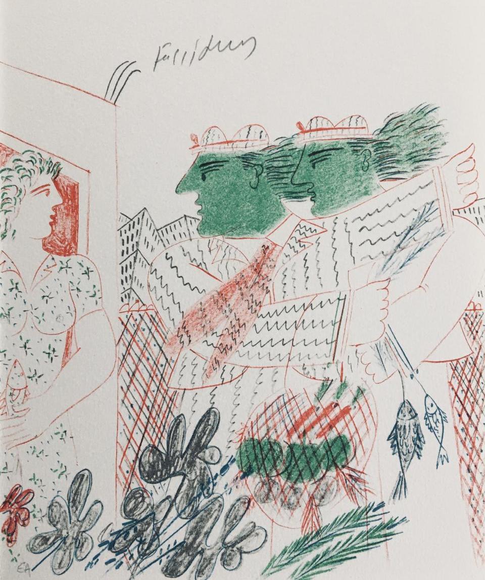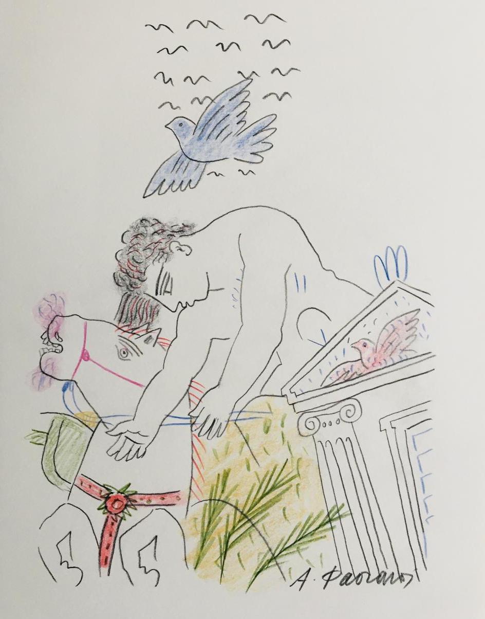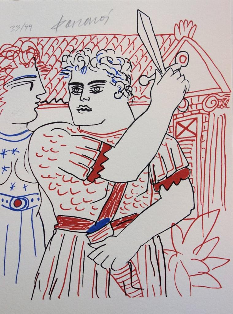 Alekos Fassianosest un peintre grec, né à Athènes en 1935. Il commence par apprendre le violon, puis il étudie à l'Académie des Beaux-Arts d'Athènes de 1956 à 1960 dans l'atelier de Yiánnis Móralis. En 1962, il obtient une bourse du gouvernement français et poursuit ses études à Paris. Il étudie aux Beaux-Arts entre 1960 et 1963 et apprend notamment la lithographie. Alekos Fassianos a réalisé des décors de théâtre et des peintures murales que l'on peut admirer à Athènes. En 2020, dans la même ville, il reçoit de la France la distinction d'Officier de la légion d'honneur et de Commandeur de l'ordre des Arts et Lettres. L'ouverture d'un musée dédié à son œuvre devrait voir le jour à l'automne 2022 dans un immeuble du centre d'Athènes, entièrement repensé par l'artiste avec son ami architecte Kyriakos Krokos.